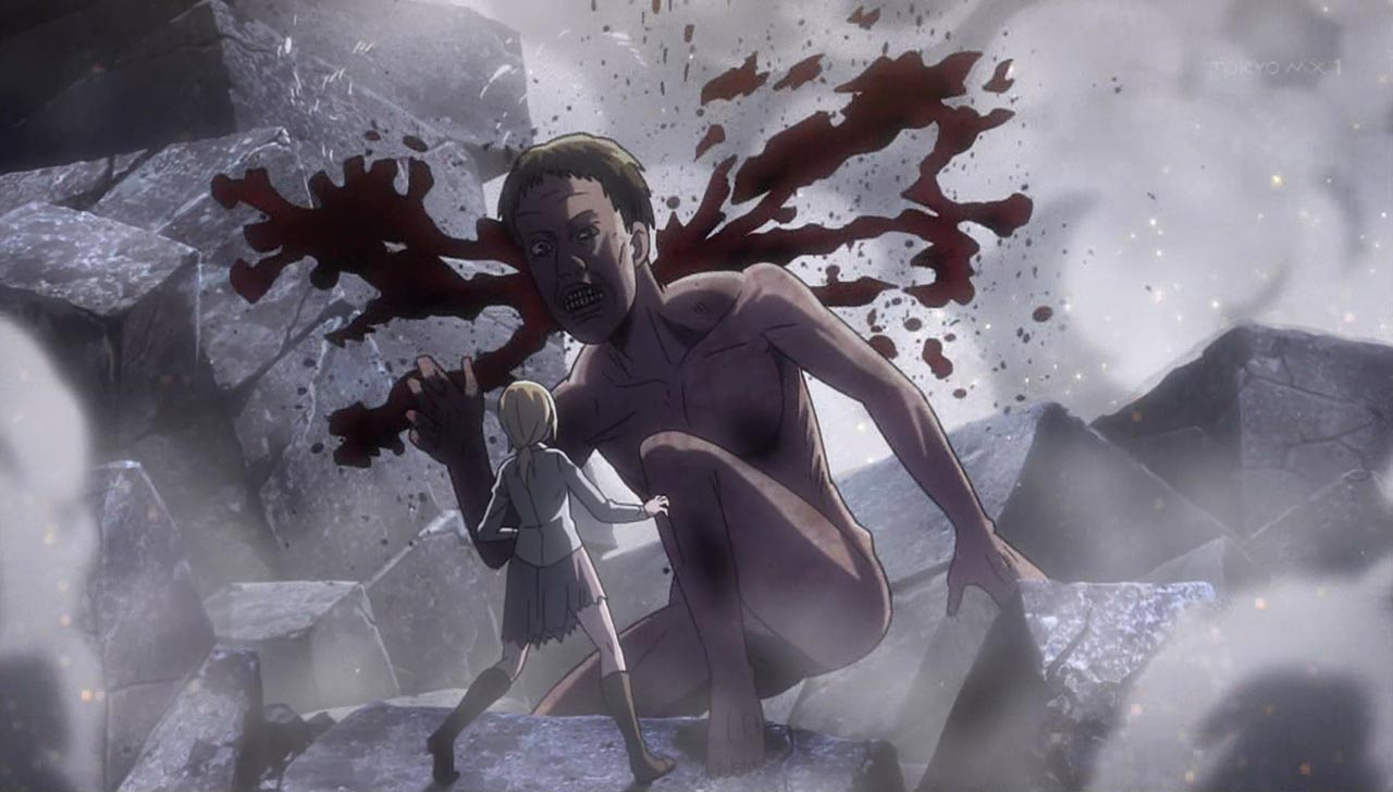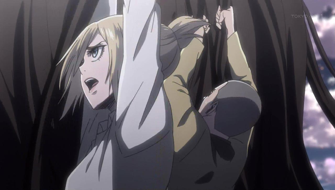 近づくクリスタに巨人・・・終わりかと思われたその時ミカ登場・・・