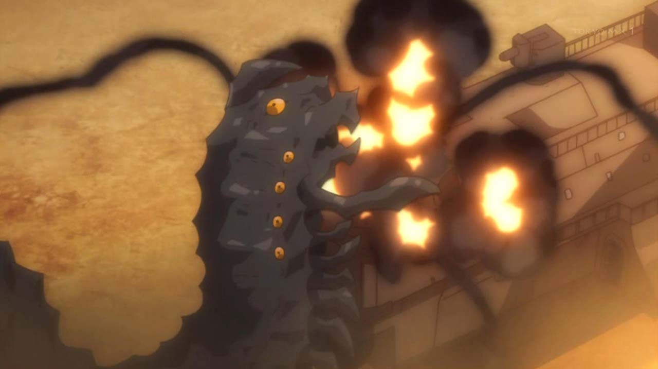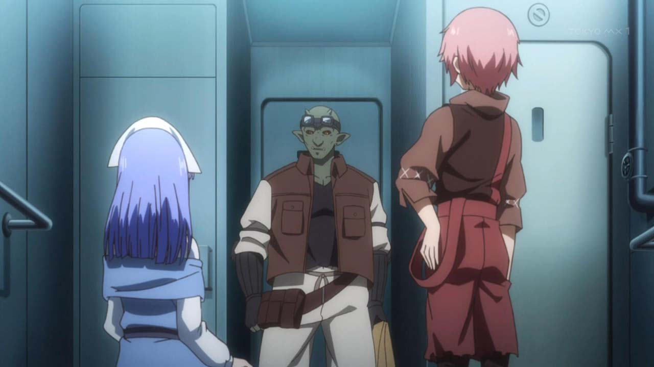 地上でサルベイジャーの護衛に就いている妖精兵、ノフトとラーントルクに面会するグリック。自分たちの存在意義に関わる「獣」の存在について、ラーントルクは問いかける。