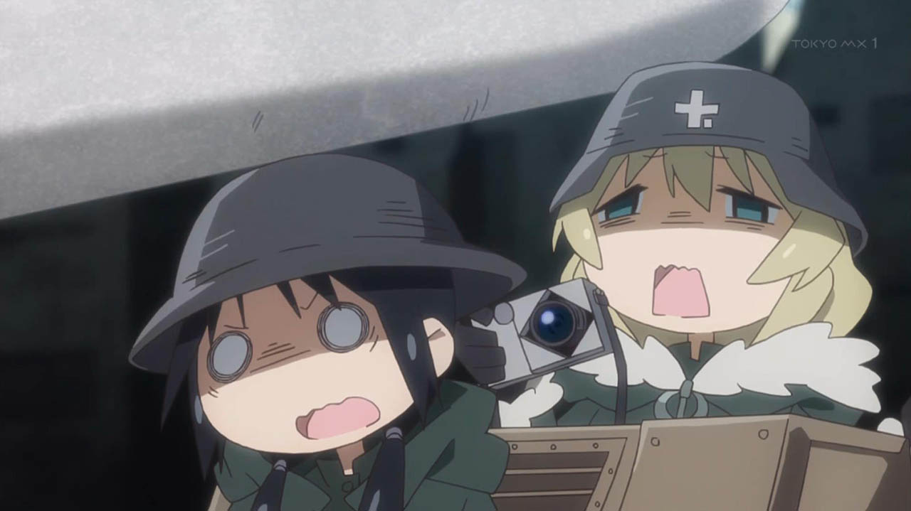生まれて初めて見るカメラを手に試行錯誤しながらユーリの写真を撮るチト。何とかピントは合ったものの画面が全体的に白く上手く撮れたとは言い難い。撮影を止め、ケッテンクラートに乗って走り出すチトとユーリだったが、カメラに興味津々のユーリはチトが首にさげているカメラを取り、写真を撮り始める。運転中のチトに声をかけ、写真を撮るユーリに、運転中によそ見をすると危ないと言うチトだったが、時既に遅く石像にぶつかってしまう。