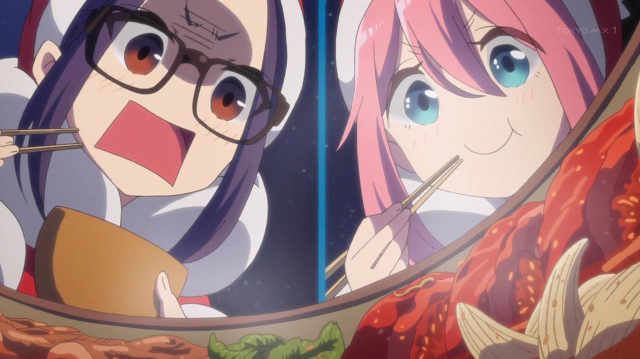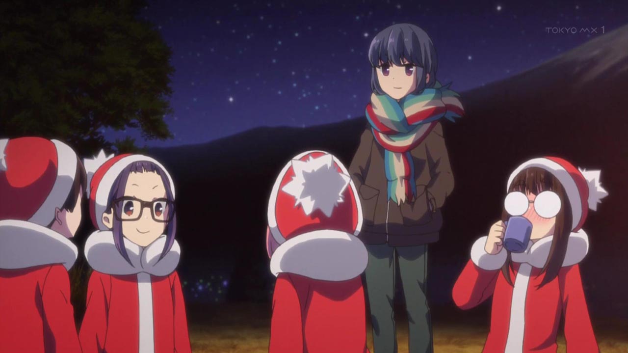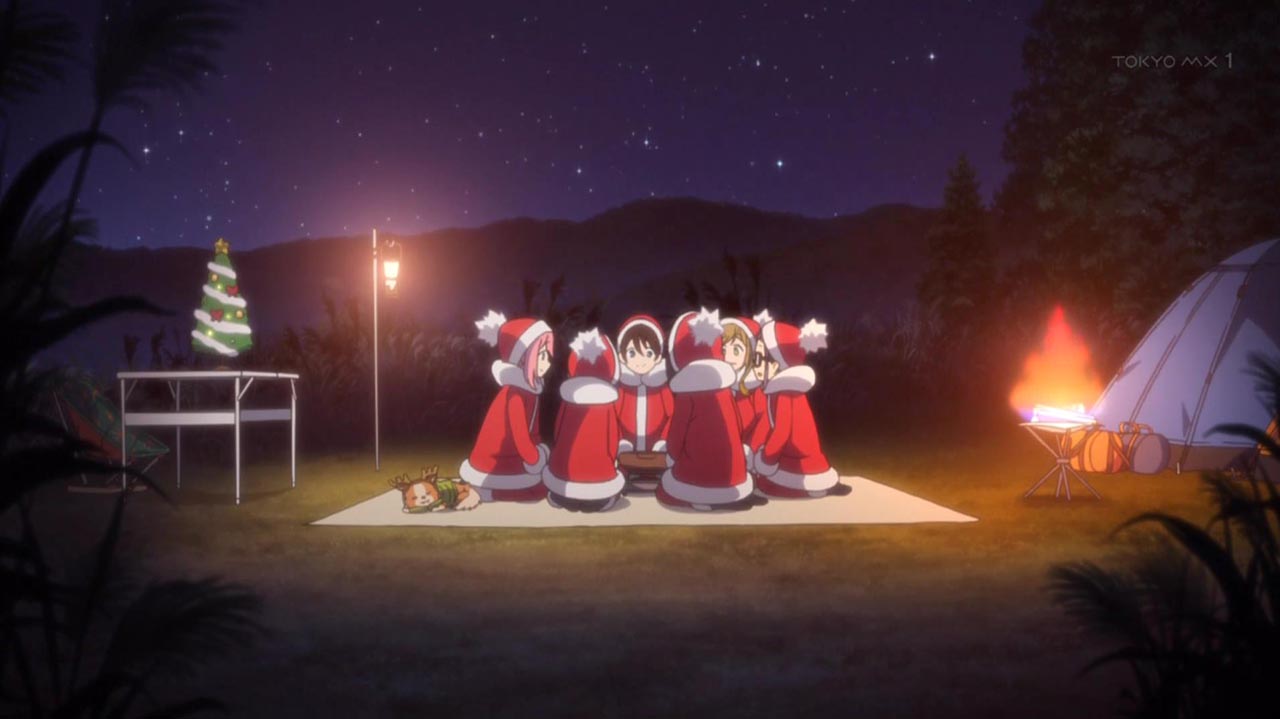 クリスマスキャンプは静岡の朝霧高原。集合時間より2時間も早く到着した千明とあおいは、近くの牧場でアイスを堪能。リンも早めに来てテントを設営する。メンバーが揃い、斉藤の飼い犬のチクワや高原に訪れていた子供たちと遊んで過ごしていると、徐々に日が落ち気温も下がってきた。今夜の献立はA5ランク牛肉のすき焼き!あおい特製の関西風すき焼きとトマトすき焼きに、なでしこたちは身も心も温まるのだった。