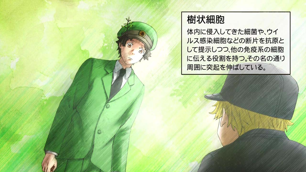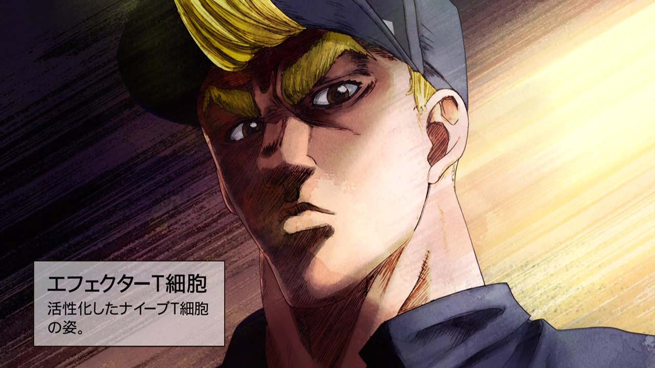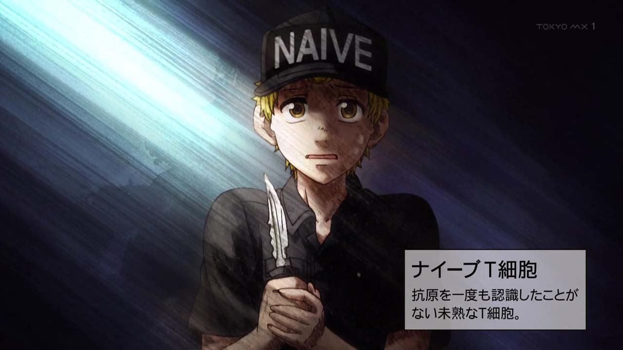 ≪今回のあらすじ≫体内で増殖したインフルエンザウイルスの偵察に向かったナイーブT細胞。だが一度も敵と戦ったことがないナイーブT細胞は敵に怯えるばかりで、まったく役に立たない。そしてついには白血球(好中球)や先輩であるキラーT細胞が戦う中、戦場から逃げ出してしまう。自分を責めるナイーブT細胞。そんな彼を見かけた樹状細胞が優しく声をかけて……。