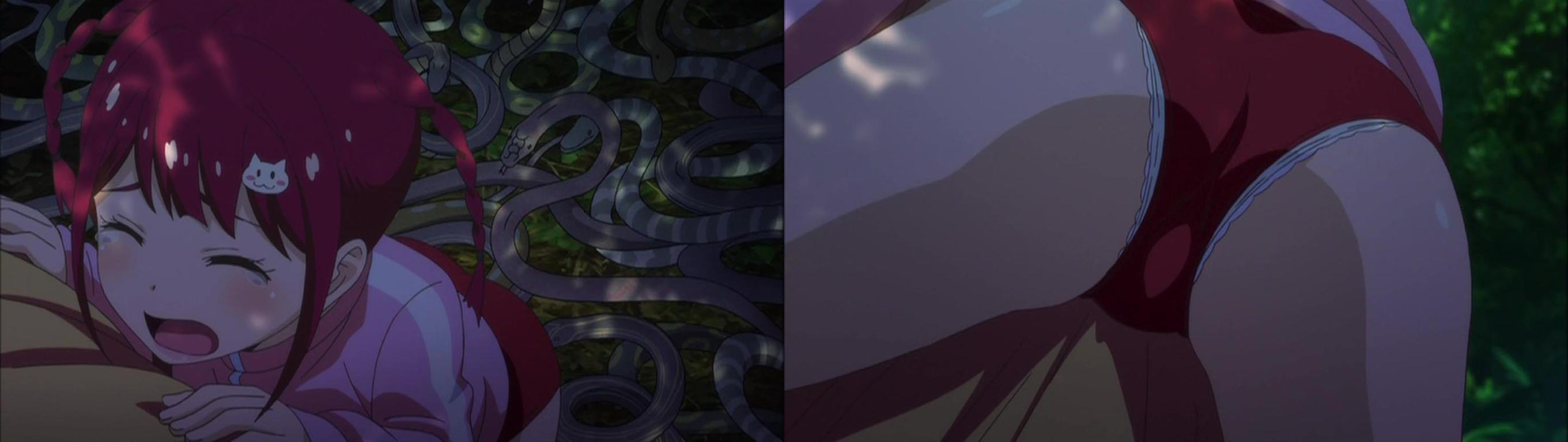 敵?を倒し、まもりは魅零におんぶされ、ジャングルをさまよい歩く。