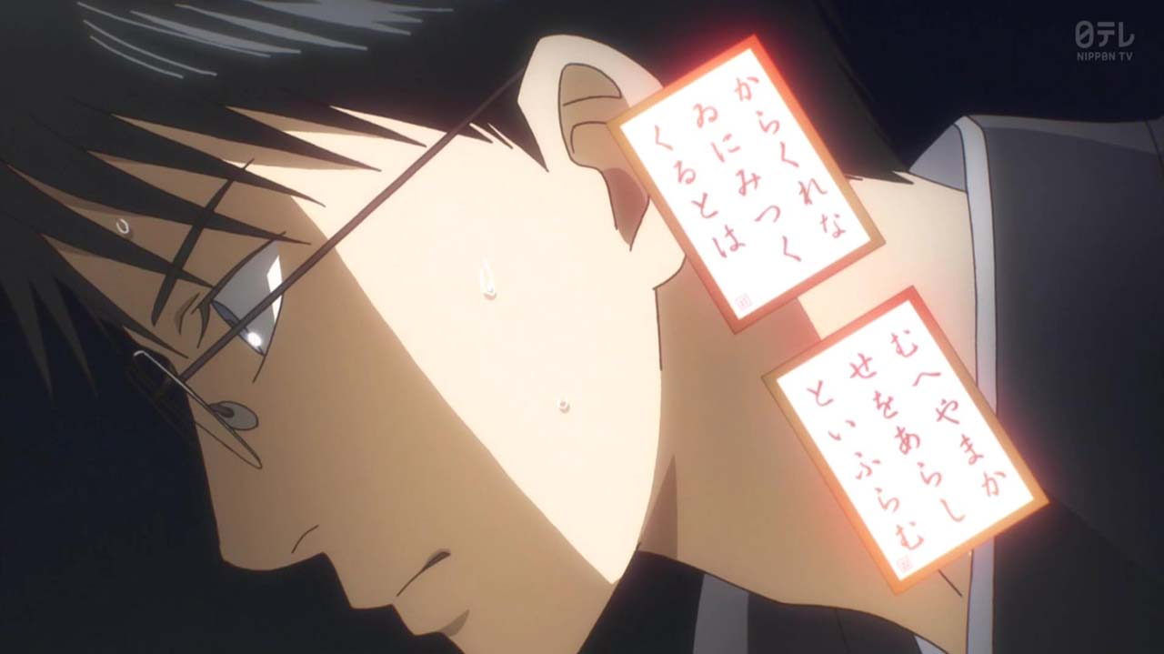 新の取りは永世名人の綿谷始が乗り移ったかのような勢いで、試合のペースを持ち込んでいく。原田はかつて始と対戦した若き日を思い出し、自分の“感じ”が衰えていることを痛感する。だがそれでも白波会の教えである攻めがるたの姿勢を貫き、会場全体が息を飲む試合展開をみせる。