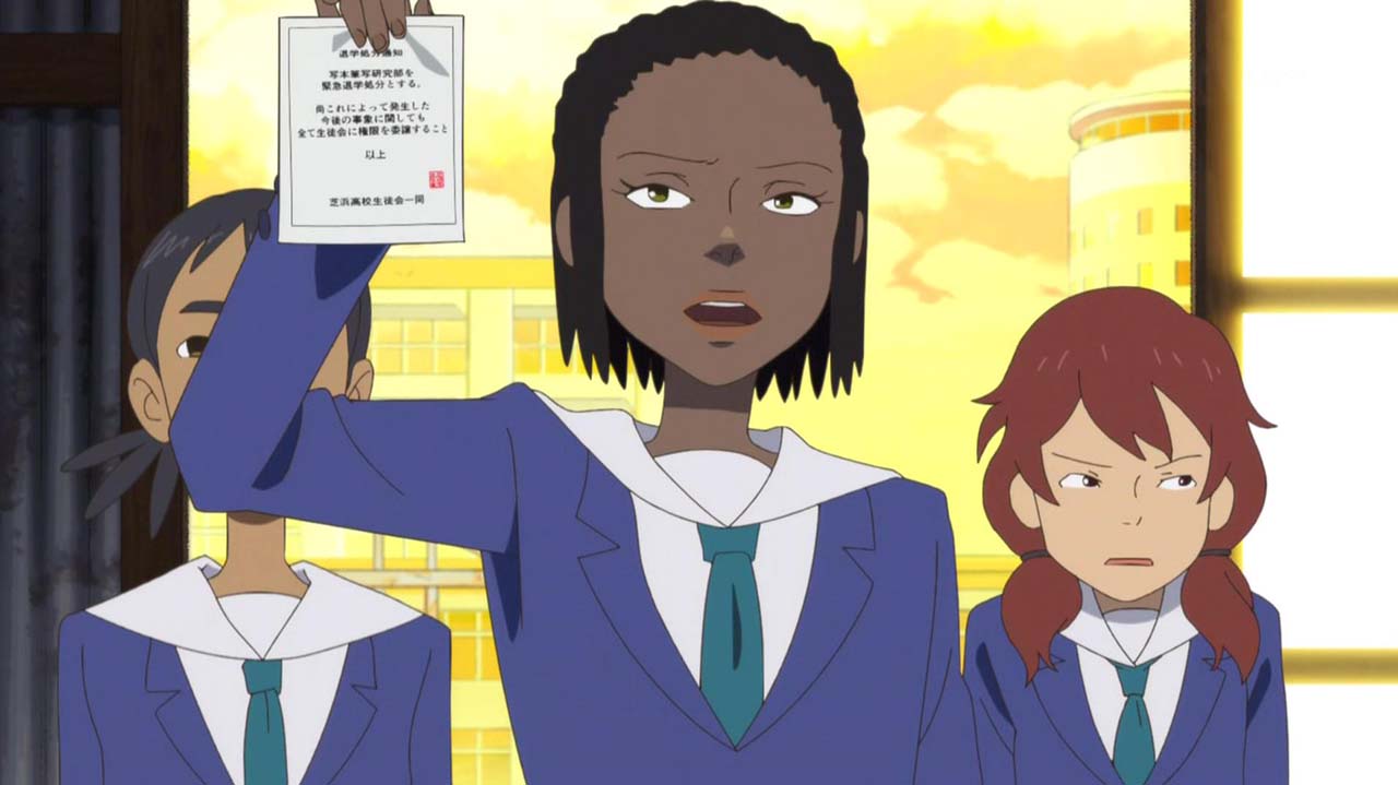 コメットAでの新作アニメ発表のためにDVDの複製を依頼していた写本筆写研究部が、不正取引で警備部に摘発された。教頭や生徒会による映像研への監視の目は厳しくなるばかりだ。しかし金森は、学校側が活動を認めざるを得ない状況に持ち込む策をめぐらせていた。一方、浅草はなかなか決めきれずにいた「敵」の設定とストーリーの核心についにたどり着く。コンテができあがったことで水崎の作画も順調に進み、完成が見えてきた。