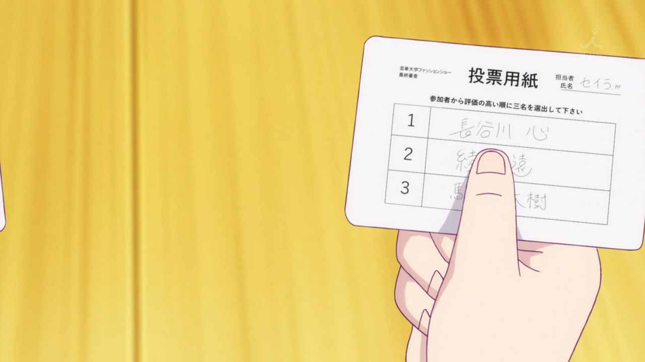 芸華祭ファッションショーもいよいよ大詰め。にわかに観客が増える中、綾野遠のショーが始まる。遠のテーマは育人と同じ「調和」。遠の持つ圧倒的な技術とセンスは、育人の感情を揺さぶり、羨望させる。大喝采でショーが終わり、いよいよ育人たちの運命の審査結果が発表されるのだったーー。