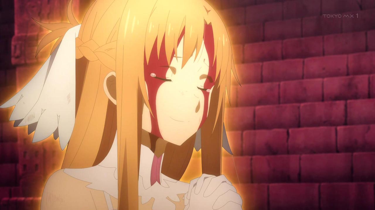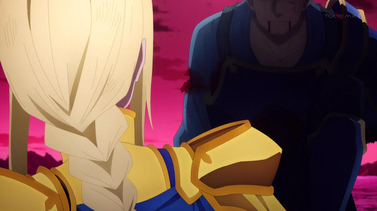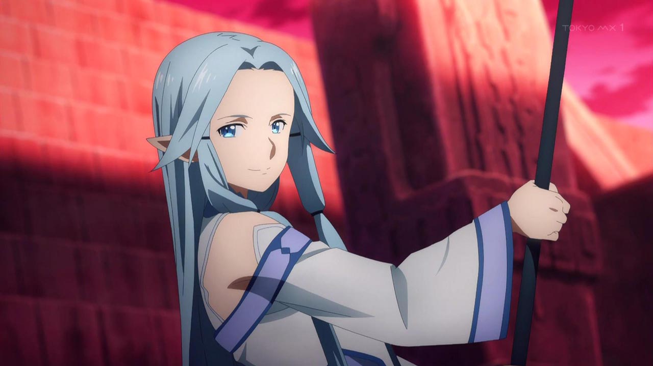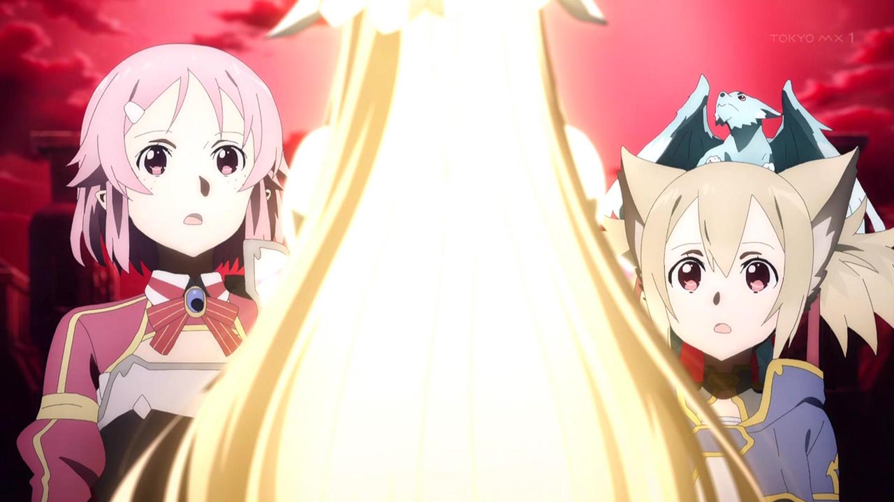 押し寄せる米国人プレイヤー軍に対し、少数ながらも勇猛に戦う《人界》軍とアスナ。だが絶望的な戦力差を覆すことは叶わず、《人界》軍の兵士たちは次々と倒れていく。満身創痍となったアスナもいつ倒れてもおかしくない状況だった。アスナが状況の打破を狙い、決死の覚悟をしたそのとき、《ALO》からの援軍を率いてログインしてくるリズベットの姿を目撃する。