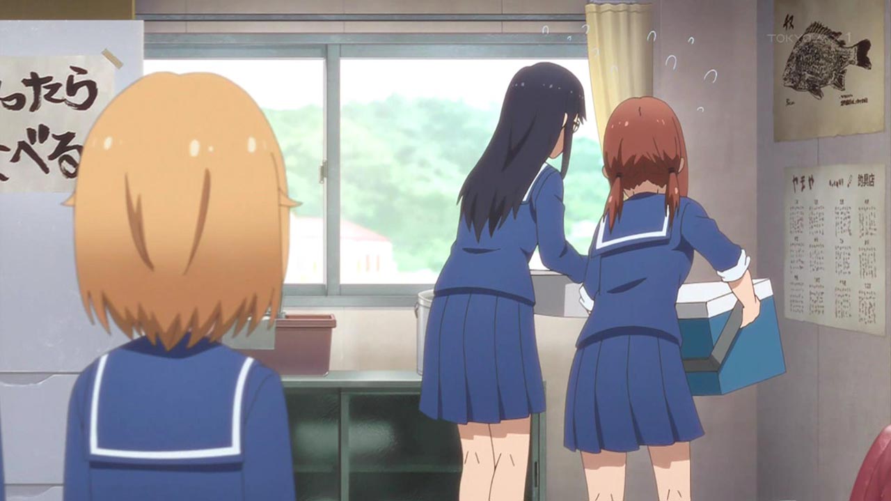 陽渚は、イカ墨で汚れたウェアがすっかり綺麗になってご機嫌な様子。そもそもなぜ制服を着て釣りをするのか気になり大野に問いかけると、ていぼう部は昔から学校のジャージか制服で活動する決まりがあるとの事。ダサいジャージで釣りをするくらいなら制服の方がマシだと思っていた陽渚ですが、黒岩に連れて行かれた先は……。