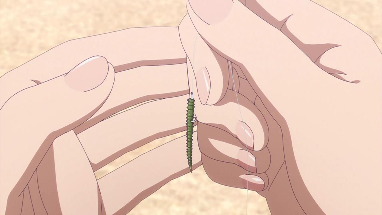 放課後、夏海が部室へ向かう準備をしていると、陽渚から「先に部室行くね!」とメッセージが届きます。陽渚はずいぶんはりきっている様子で、誰よりも早くキス釣りの準備を終わらせていました。昨日釣れなかった原因を調べてみたところ、「虫エサと疑似餌では決定的な違いがあった」と語る陽渚。その違いとは……。