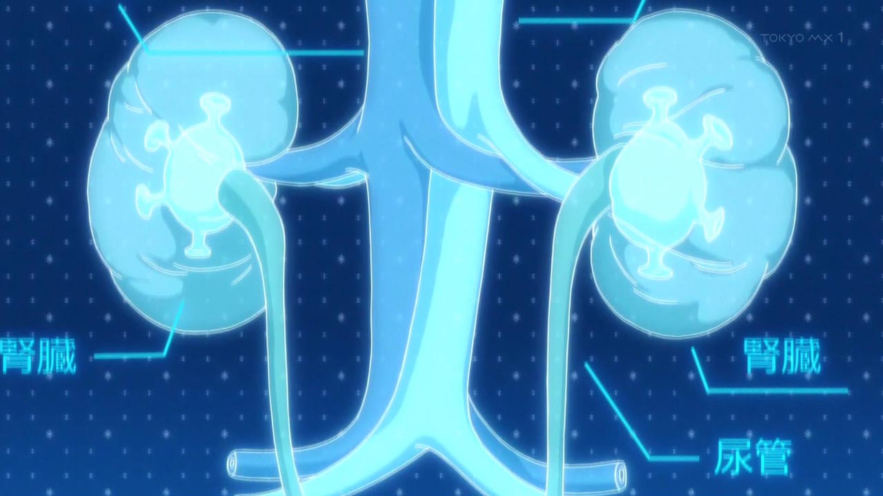 仕事にも慣れ始め、合間に軽口を叩きあう余裕も出てきた赤血球(AA2153)と赤血球(AC1677)。二人は仕事中に付着した汚れを洗い流すため、腎臓を訪れることに。腎臓では、血液をろ過する役割を担う糸球体達が、黙々と仕事をこなしていた。そこで若い糸球体から、とある忠告を受ける。「尿管の近くを通るときは気を付けてください……」。その後、赤血球達が尿管のすぐそば、輸出細動脈を訪れると、何かが引っかかる不穏な音が辺りに響いた……。