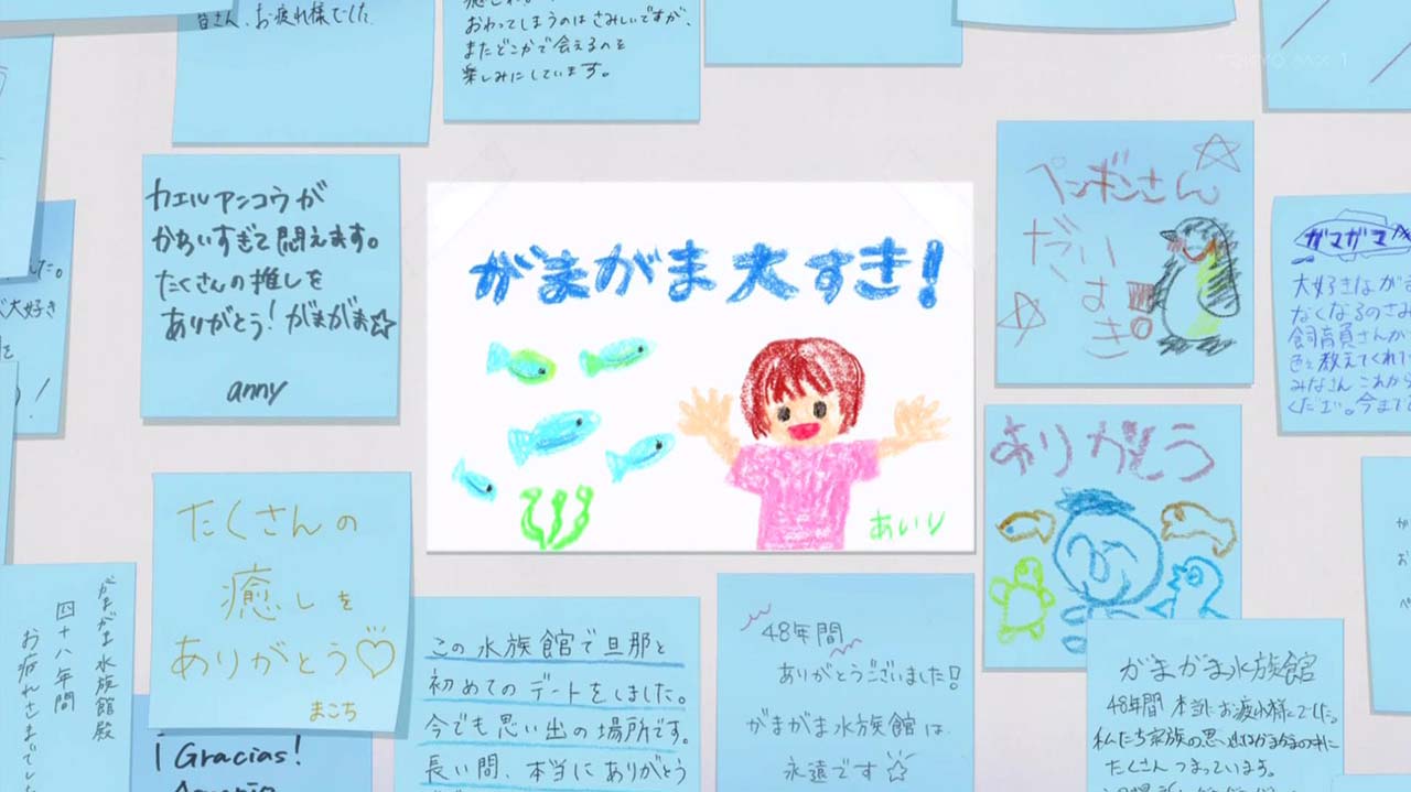 営業最終日、「がまがま水族館」には多くの客が訪れていた。その様子に満足げなくくるたちは、最後の思い出を作りつつ今日も仕事に励んでいた。たくさんの人の笑顔と賑わいの中、ちいさな水族館は閉館する。その日の夜、お互いの進路について話すくくると風花。彼女たちの決断とは……?