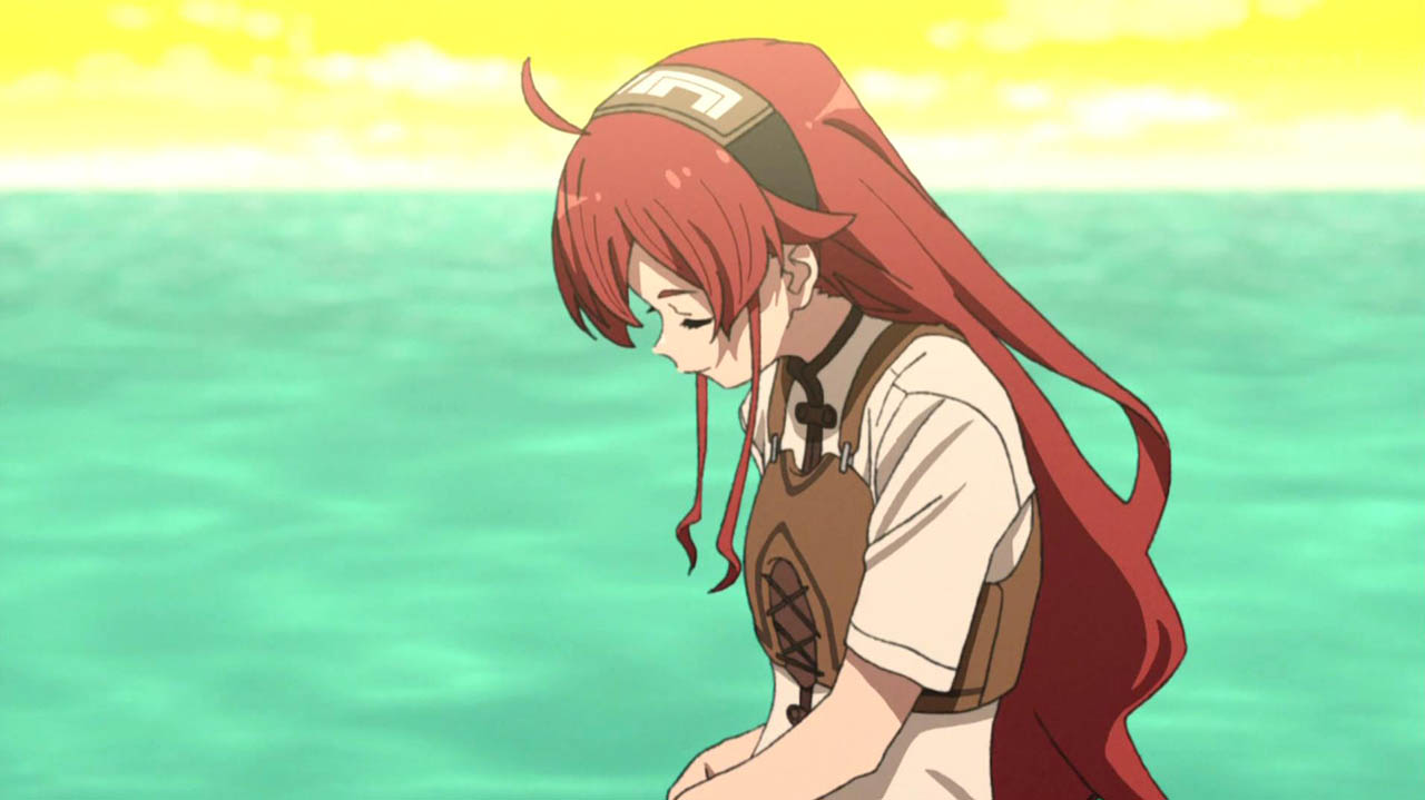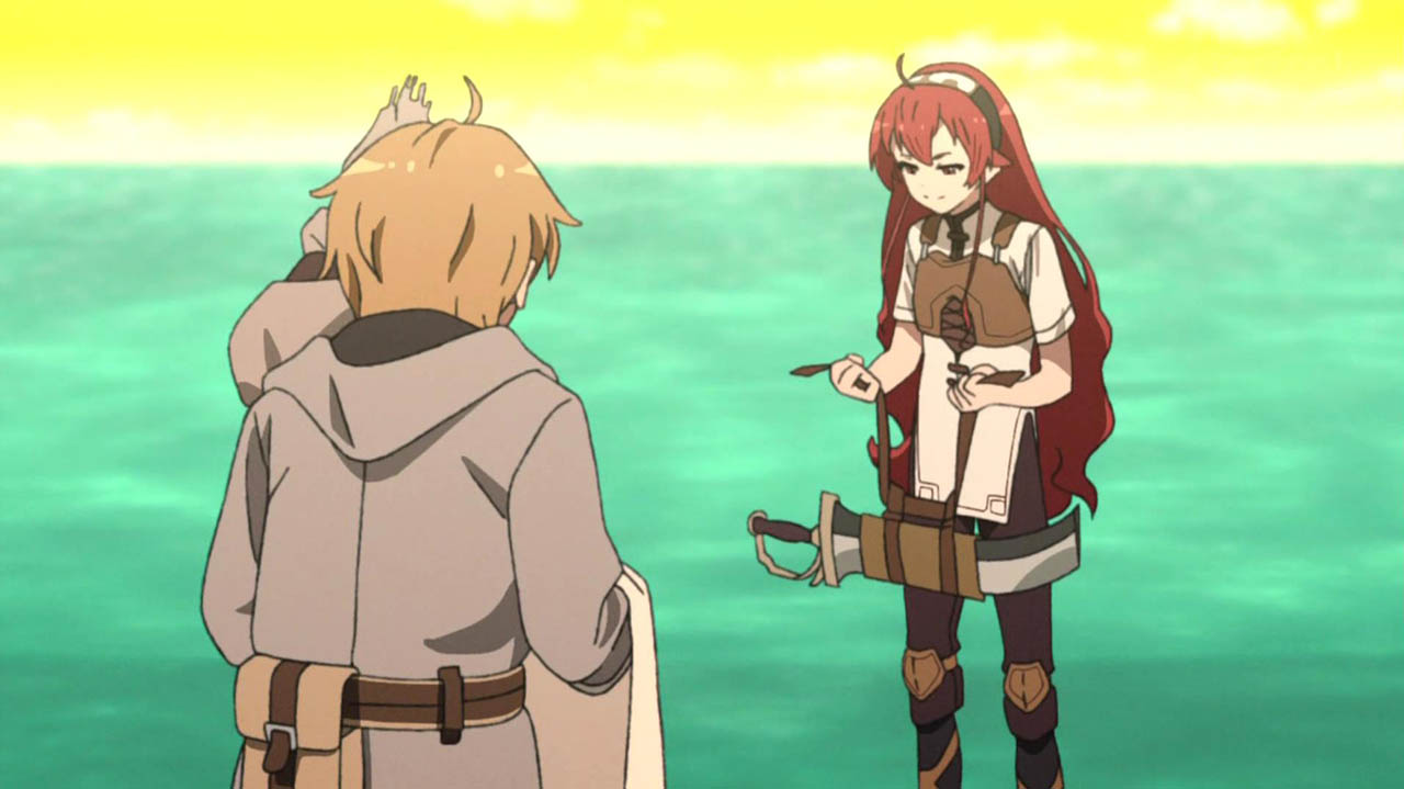 魔大陸最南端の港町・ウェンポートに到着したルーデウスたち。 3人は船でミリス大陸へ渡ろうとするが、スペルド族がいるという理由で途方もない渡航費用を請求されてしまう。 その夜、資金不足に悩むルーデウスの夢にヒトガミが姿を現すと、彼に助言を残していく。 翌日、ルーデウスが町の中を散策していると、お腹をすかせた謎の少女と出会う。