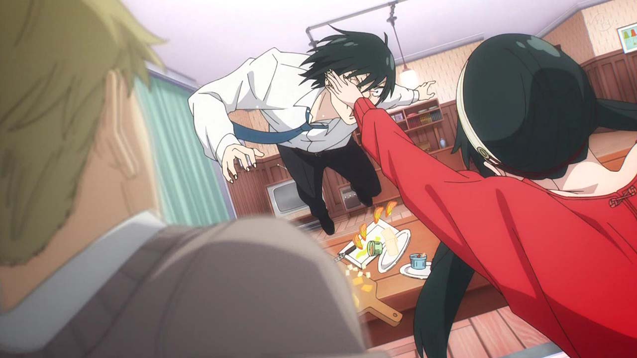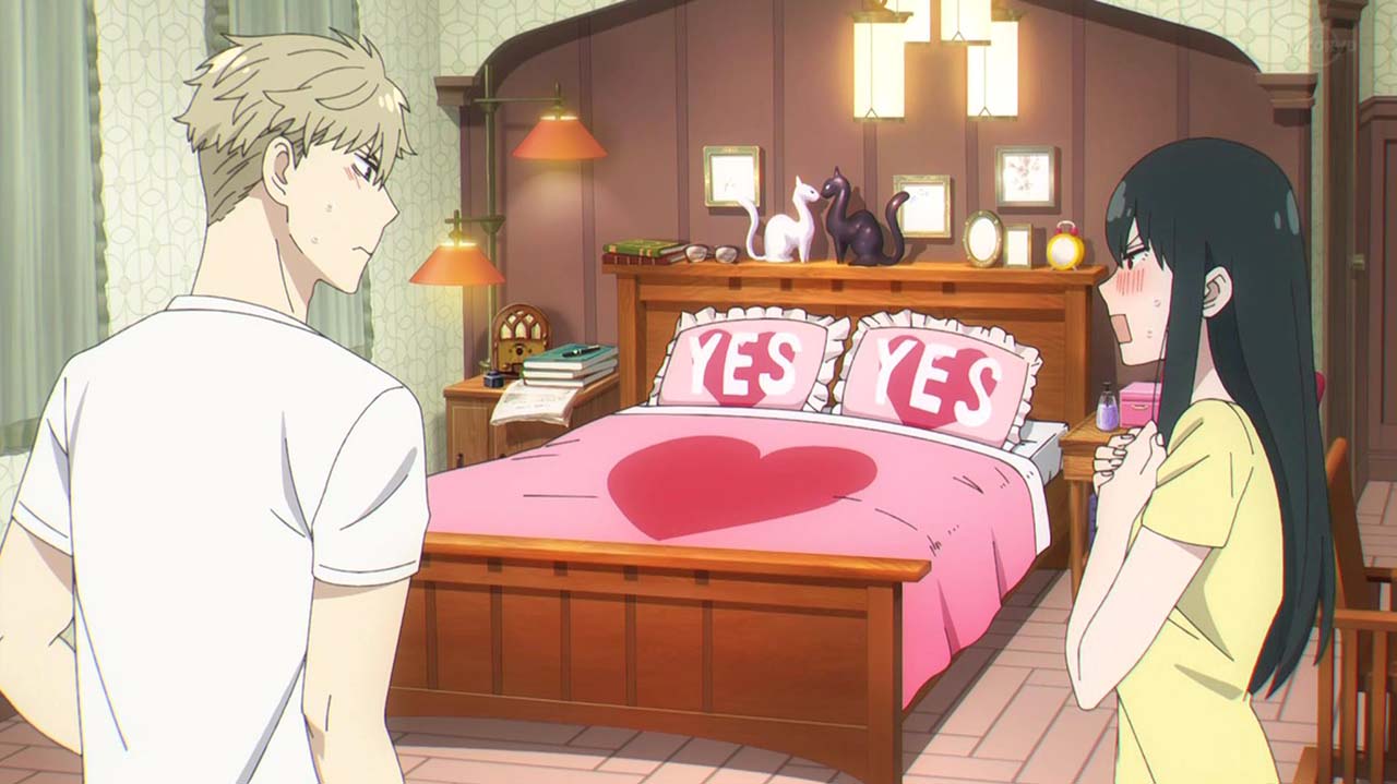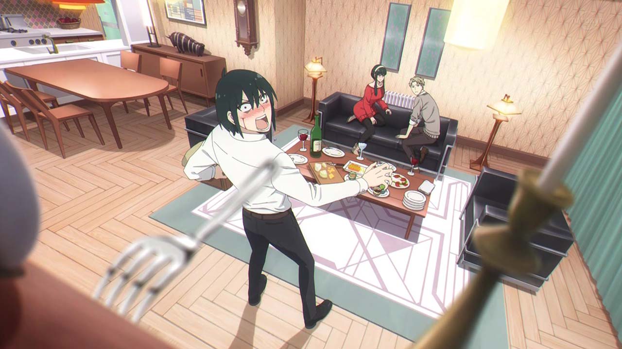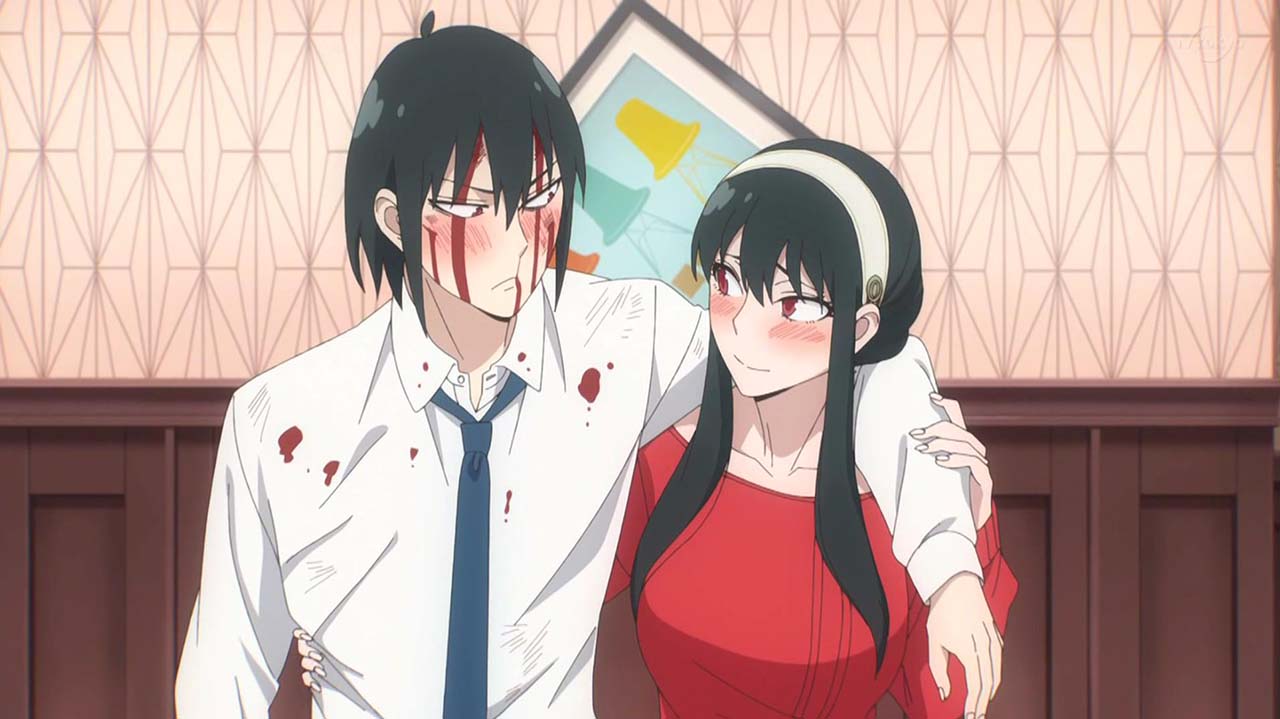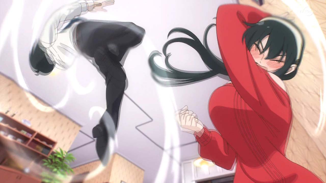 ユーリに偽装夫婦と怪しまれたロイドたちは、本物の夫婦であることを証明するためにキスをすることに。オペレーション〈梟ストリクス〉のため即座に対応しようとするロイドとは逆に、とてもシラフではできないと、ワインをガブ飲みして泥酔するヨル。そんな姉を見るユーリも、同じく泥酔して正常な判断ができず……。