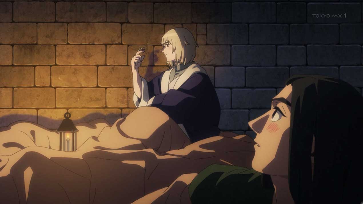 ライオスは古代魔術でファリンを蘇生したとシュローに打ち明ける。