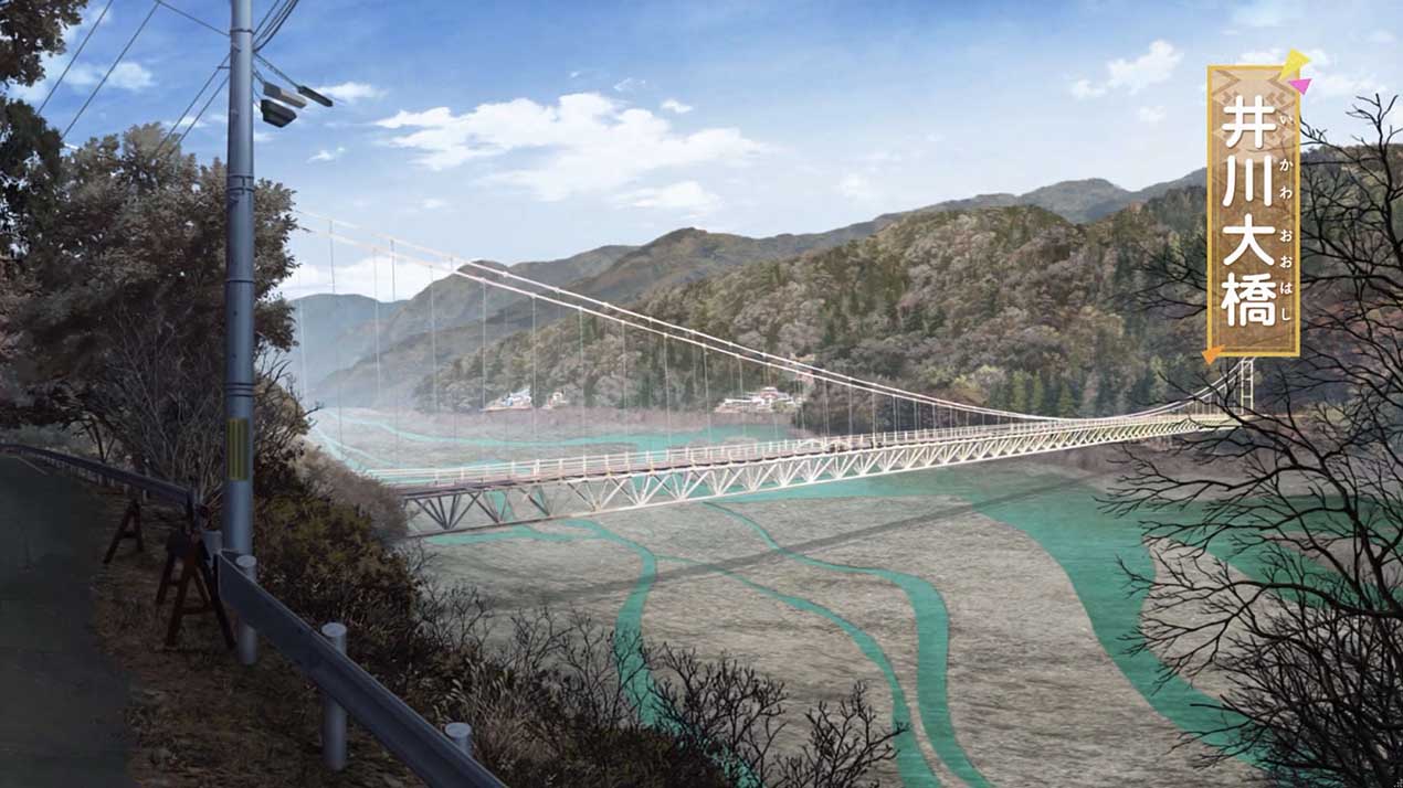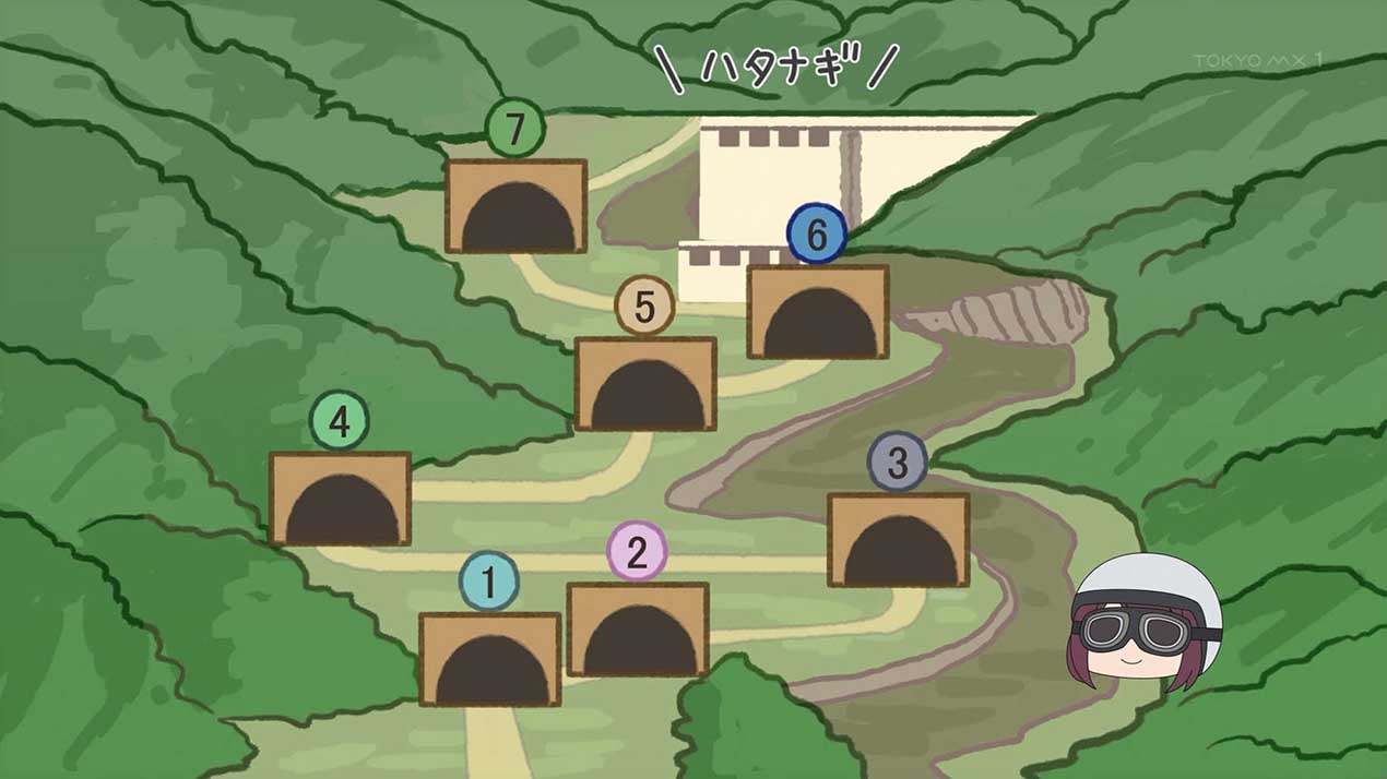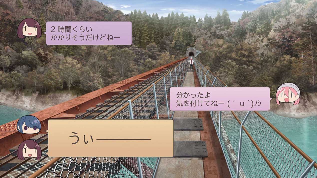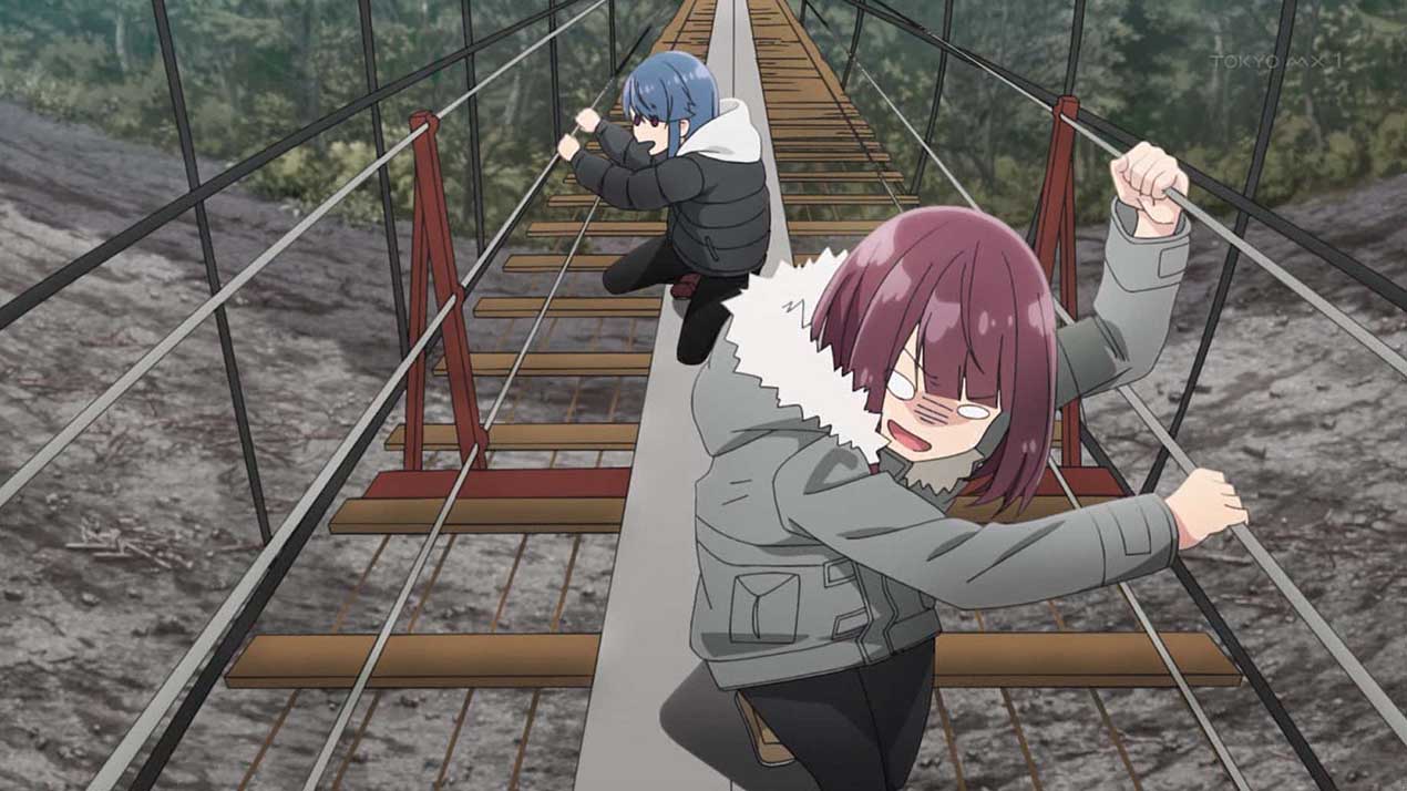旅客と交流しながら、鉄道一人旅を満喫するなでしこ。目的の駅に着いたあとは、吊り橋を渡り、キャンプ場を目指す。しかし、リンと綾乃が到着するまで時間があったので、なでしこはキャンプの準備を始める前に周辺のダムを観光しつつ、再び電車に乗って奥大井湖上駅を目指していく。一方、ツーリング中のリンと綾乃は、落石が転がる険道を進みながら、吊り橋巡りを続けていて……。