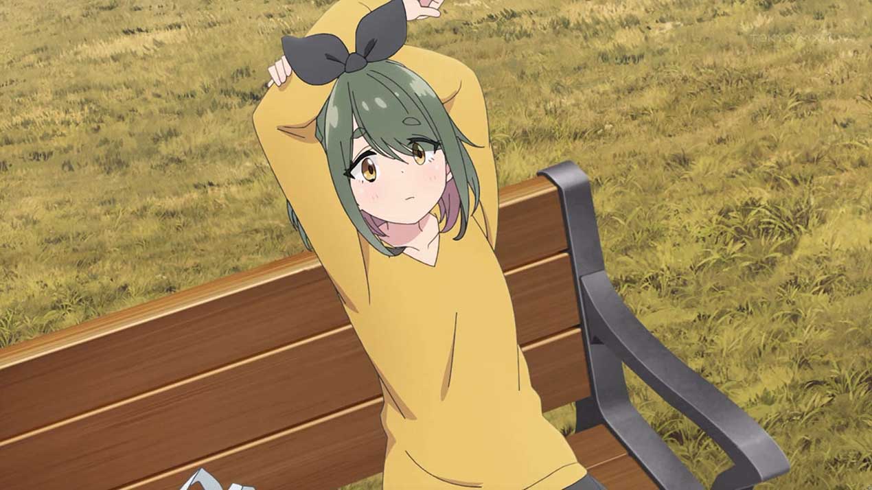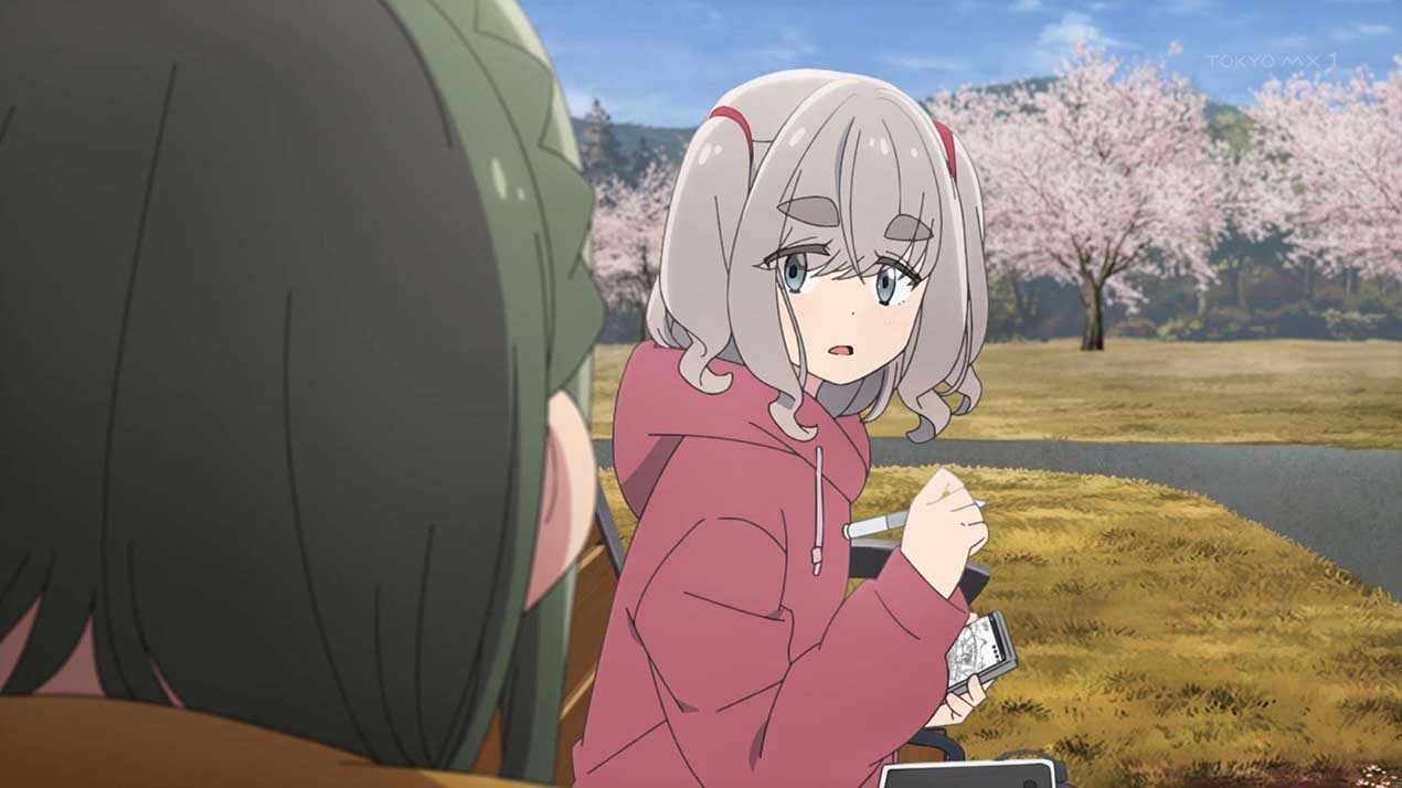 リンは花見スポットを巡りながら、甲府盆地の外周をツーリング。なでしこは姉の桜と花見ドライブ。千明はみんなとの花見の場所取りを兼ねた初めてのソロキャンと、それぞれ思い思いに休日を過ごしていた。そんな中、ちくわと富士川公園に来ていた恵那は、春のポカポカ陽気に当てられて、ベンチで居眠りしてしまう。すると、散歩中の女の子がベンチにやって来て、寝ている恵那とちくわの絵を描きはじめていき……。