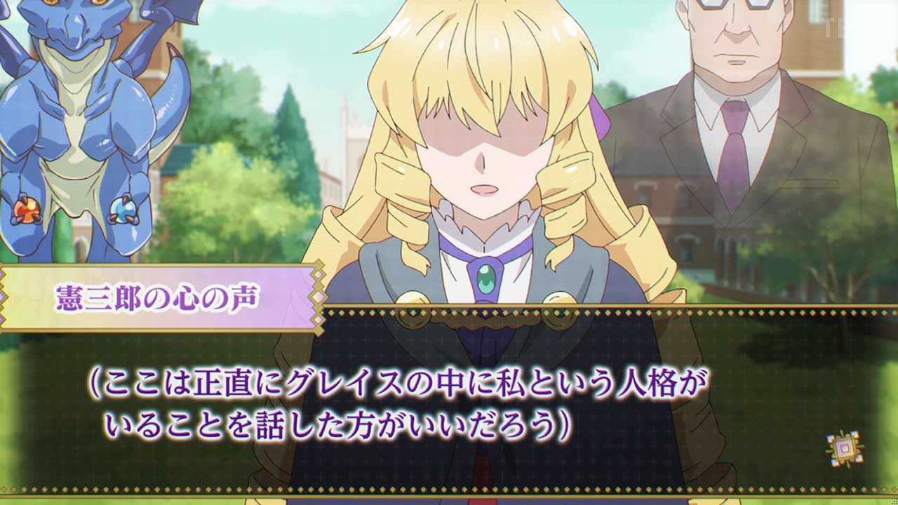 従魔(ビースト)として古代龍(エンシェントドラゴン)を召喚したグレイス=憲三郎。オリオンと名付けられ、炎と水、2つの属性を持つ特殊な従魔は一躍注目の的に。学園長もオリオンに興味を示し、グレイス=憲三郎に学期末に行われる魔法模範演習、通称、マジックエキシビションへオリオンと共に出場するよう提案する……。一方、現実世界。部分的であれば乙女ゲームの世界に干渉し、父親の手助けができることに気が付いた日菜子たちは、引き続きゲームを進めることにする。