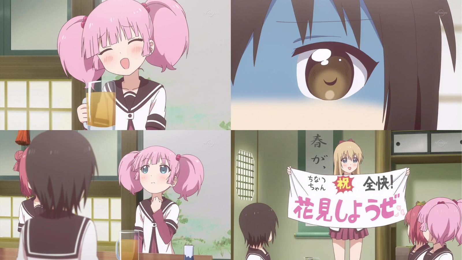 結衣からお茶褒められたちなつ。